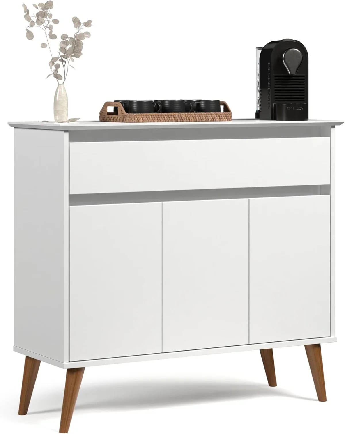 Aparador Balcão Armário Bancada Cozinha Cantinho do Café Buffet Sala de Jantar Bar e Estar com 3 Portas e 1 Gaveta Retrô Zeus (Branco)