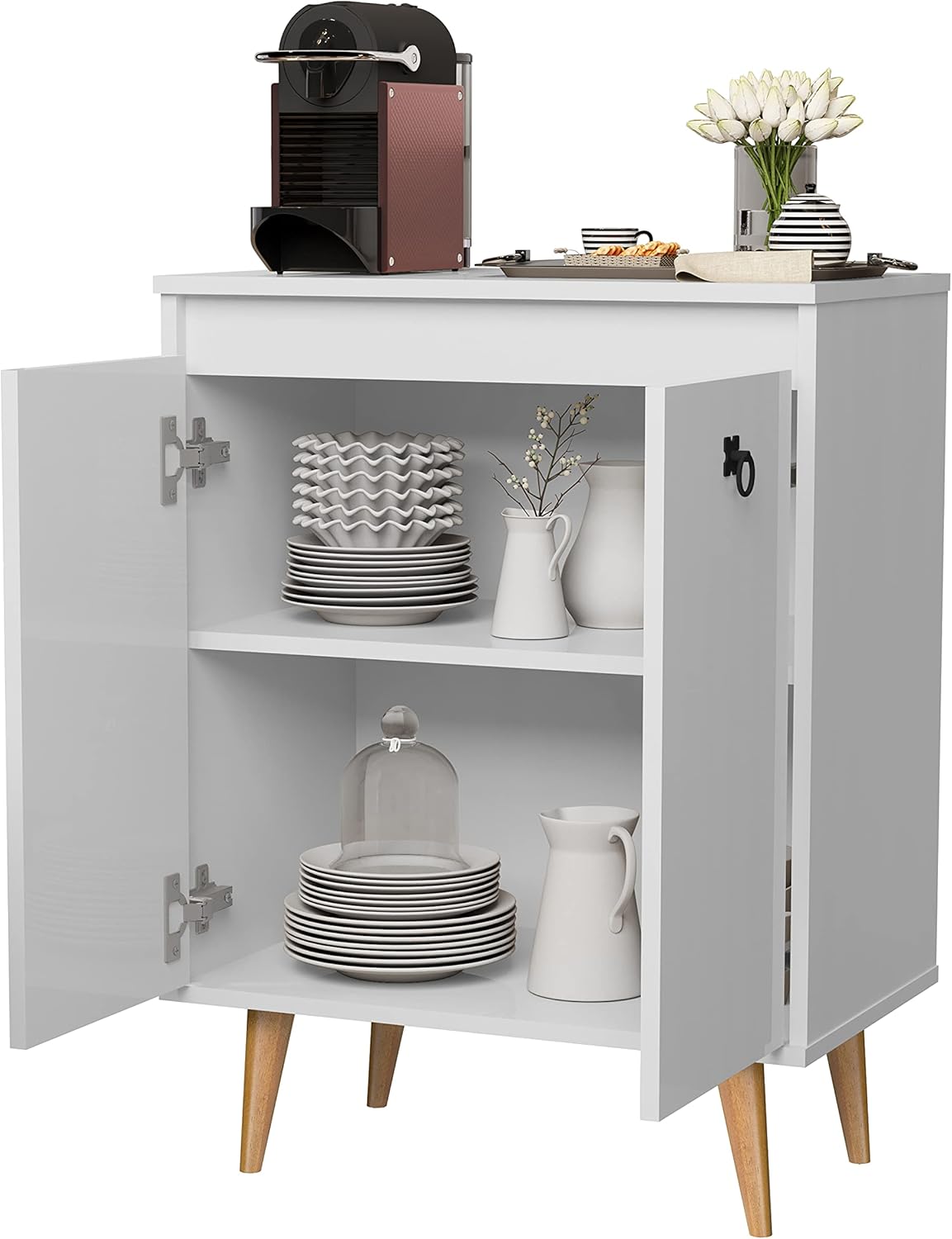 O Buffet Dream é um móvel versátil e elegante que pode ser utilizado como cantinho do café, buffet para sala ou aparador. Seu design diferenciado é realçado pelos pés de madeira maciça estilo Retrô e pelos puxadores de ferro. Além disso, ele conta com uma prateleira para organizar seus objetos. Características: Material: Produzido em MDP Dimensões Montadas: Altura: 80 cm Largura: 59,6 cm Profundidade: 36 cm Pés: Os pés de 17 cm em madeira maciça conferem estabilidade e um toque retrô ao móvel. Acabamento: A pintura UV garante durabilidade e resistência. COR : BRANCO (BRILHANTE) Montagem: O produto é entregue desmontado, mas a montagem é simples e de responsabilidade do comprador. Lembre-se de que as imagens são meramente ilustrativas e podem variar devido à resolução do monitor. Aproveite o estilo único do Buffet Dream para transformar seu espaço e compre na Loja Estilo Decor!