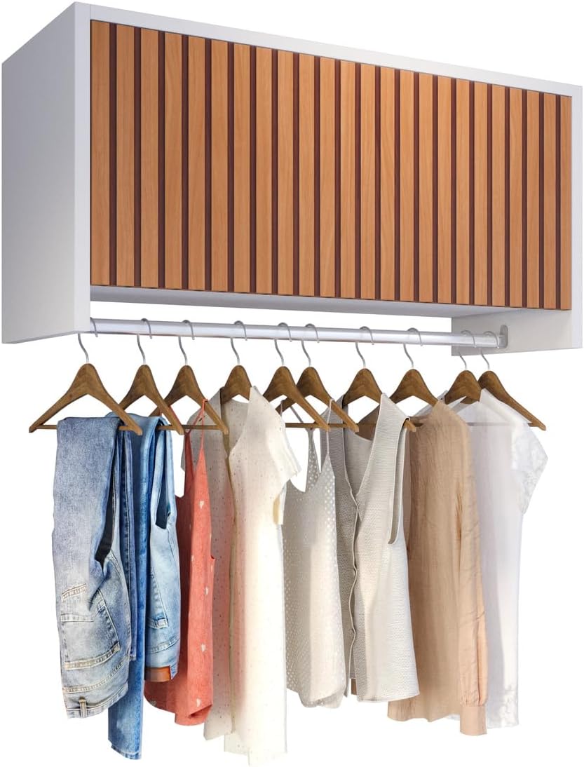 Armário Aéreo Multiuso Delta Parede Suspenso Cabideiro Lavanderia (Branco/Ripado)