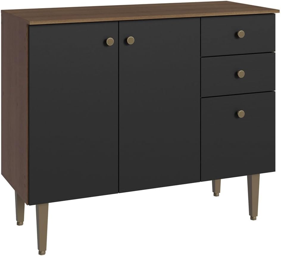 Balcão Gabinete 3 Portas 2 Gavetas Rustic/preto Gourmet Madesa