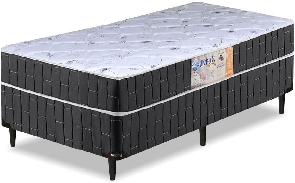 Cama Box Solteiro Conjugado Granada Umaflex Preto/Branco Flor