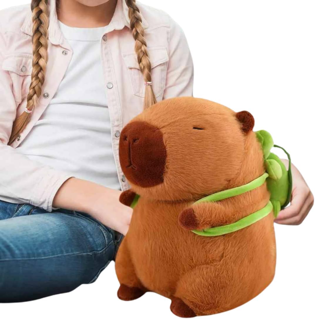 Capivara de Pelúcia Brinquedo com Mochila Tartaruga Fofo para Presentear Decoração 30cm ®Hallure