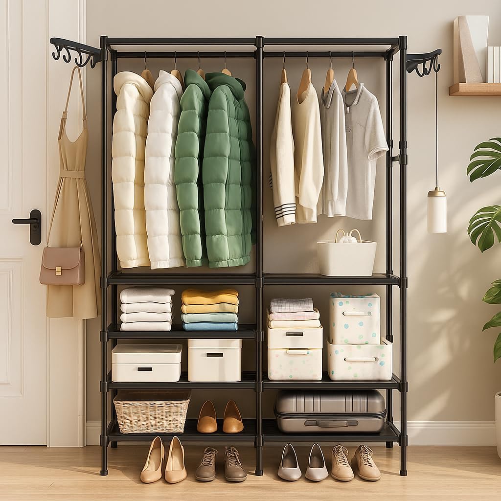Estante Organizadora Rack Arara Sapateira Cabideiro Prateleiras Armário Multiuso Guarda Roupa Compacto Moderno Prático Preto
