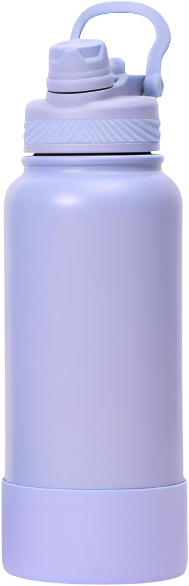 Garrafa Térmica de Água 1 Litro com Alça Garrafinha 2 em 1 com Canudo e Saída Livre em Inox e Sistema Térmico a Vácuo (Lilás)