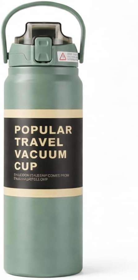 Garrafa Térmica em Aço Inox Grande com Canudo Alça e Trava Parede Dupla 900ML (Verde)