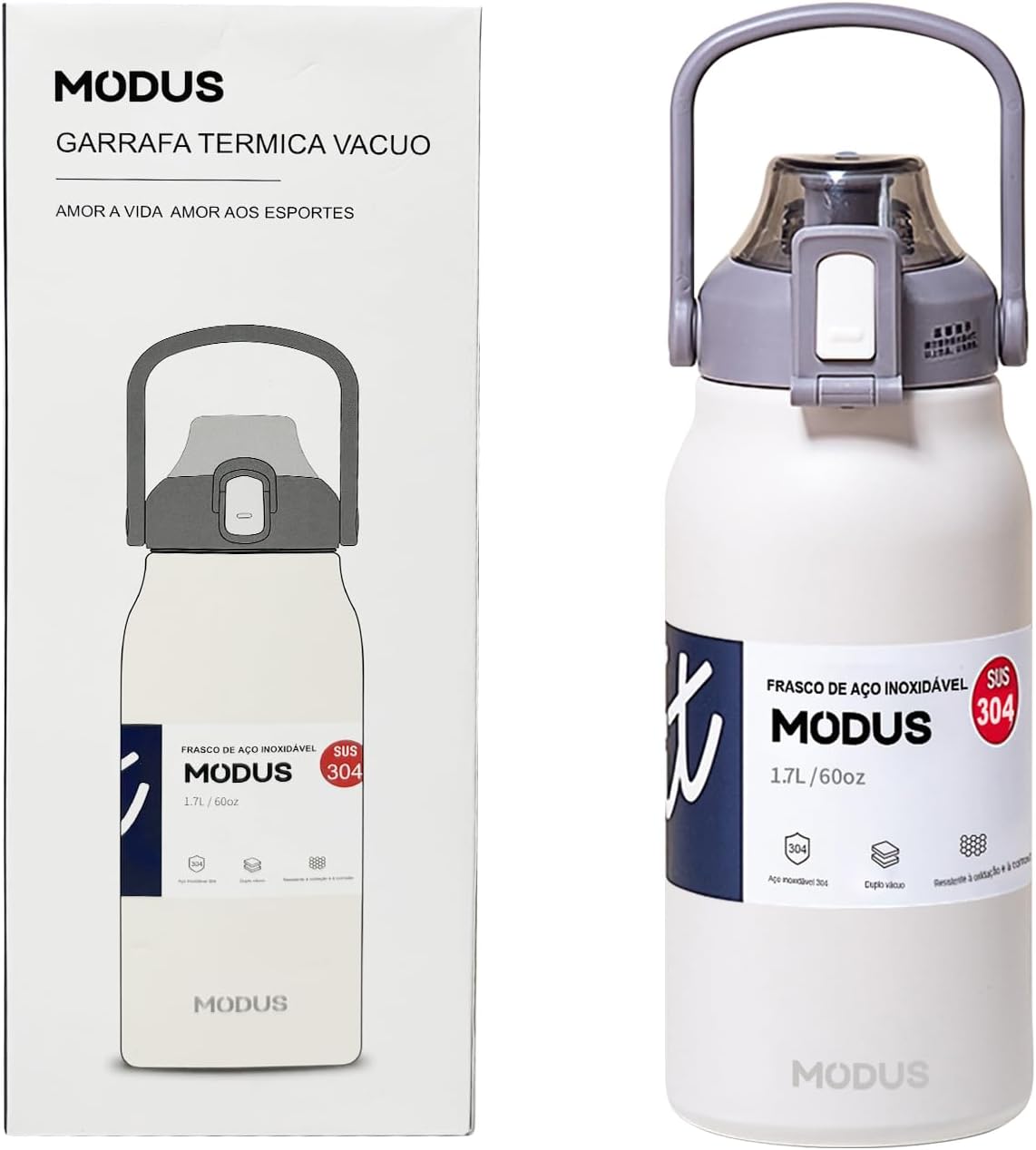 Garrafa Térmica Isolada a Vácuo De Aço Inoxidável 304 1700ML Grande Capacidade Com Canudo (Branco)