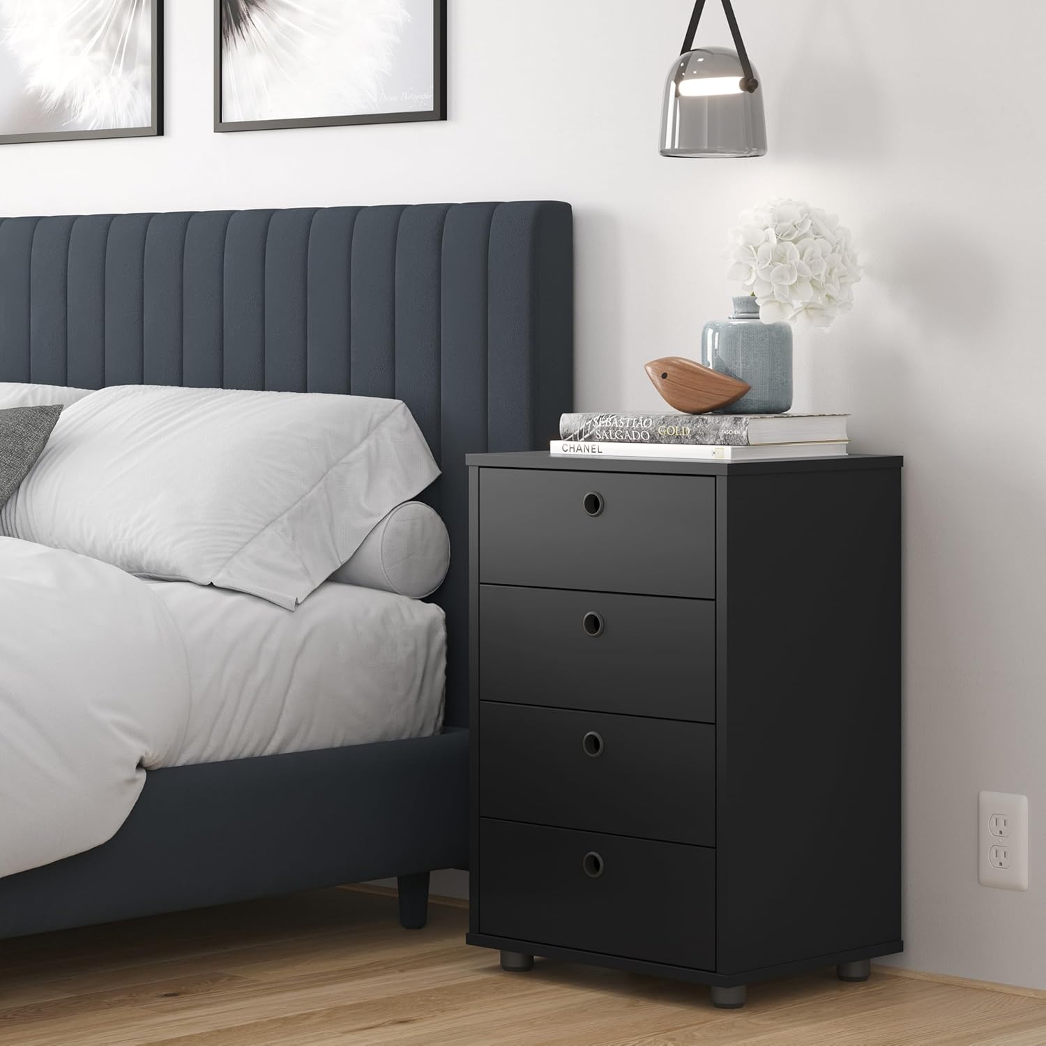 Gaveteiro Mesa de Cabeceira Multiuso Classic 4 Gavetas Quarto/Dream/Escritório (PRETO)