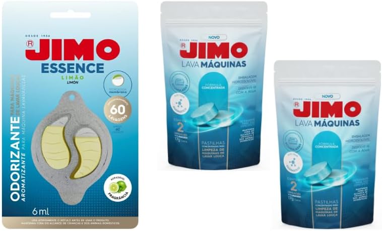 🧼 Kit Jimo Lava-Louças – Limpeza Profunda e Aroma Refrescante! O kit ideal para manter sua máquina de lavar louças limpa, higienizada e perfumada! Composto por pastilhas Jimo Limpa Lava-Louça e o exclusivo odorizador Jimo Essence aroma limão, este combo é a solução completa para quem busca eficiência, praticidade e cuidado com o eletrodoméstico. 🟢 Jimo Pastilha Limpa Lava-Louça – Nova Fórmula! Produto super concentrado com alta atividade enzimática, desenvolvido especialmente para a limpeza interna da máquina de lavar louça. Elimina acúmulo de gordura, resíduos de alimentos e odores indesejados causados pelo uso contínuo. ✅ Remove sujeiras e gordura incrustada ✅ Higieniza profundamente por ação biológica ✅ Deixa um suave aroma cítrico ✅ Ideal para manutenção preventiva da sua lava-louças Modo de uso: Coloque as duas pastilhas no interior da máquina vazia (preferencialmente no cesto de talheres) e acione o ciclo longo de lavagem. 🍋 Jimo Essence – Odorizador para Lava-Louças Aroma Limão O Jimo Essence Odorizador proporciona um cheirinho agradável à sua máquina de lavar louça entre os ciclos de lavagem. Ideal para quem quer manter o aparelho sempre fresco e sem odores desagradáveis! ✅ Aroma refrescante de limão ✅ Fácil de instalar (encaixe na grade superior da máquina) ✅ Elimina odores causados por resíduos e umidade ✅ Efeito prolongado Importante: Pode haver absorção temporária do aroma por peças plásticas, o que é natural e seguro. 📦 Conteúdo do Kit: 3 pastilhas de 17g cada – Jimo Lava-Máquinas 1 odorizador Jimo Essence 6ml – aroma limão